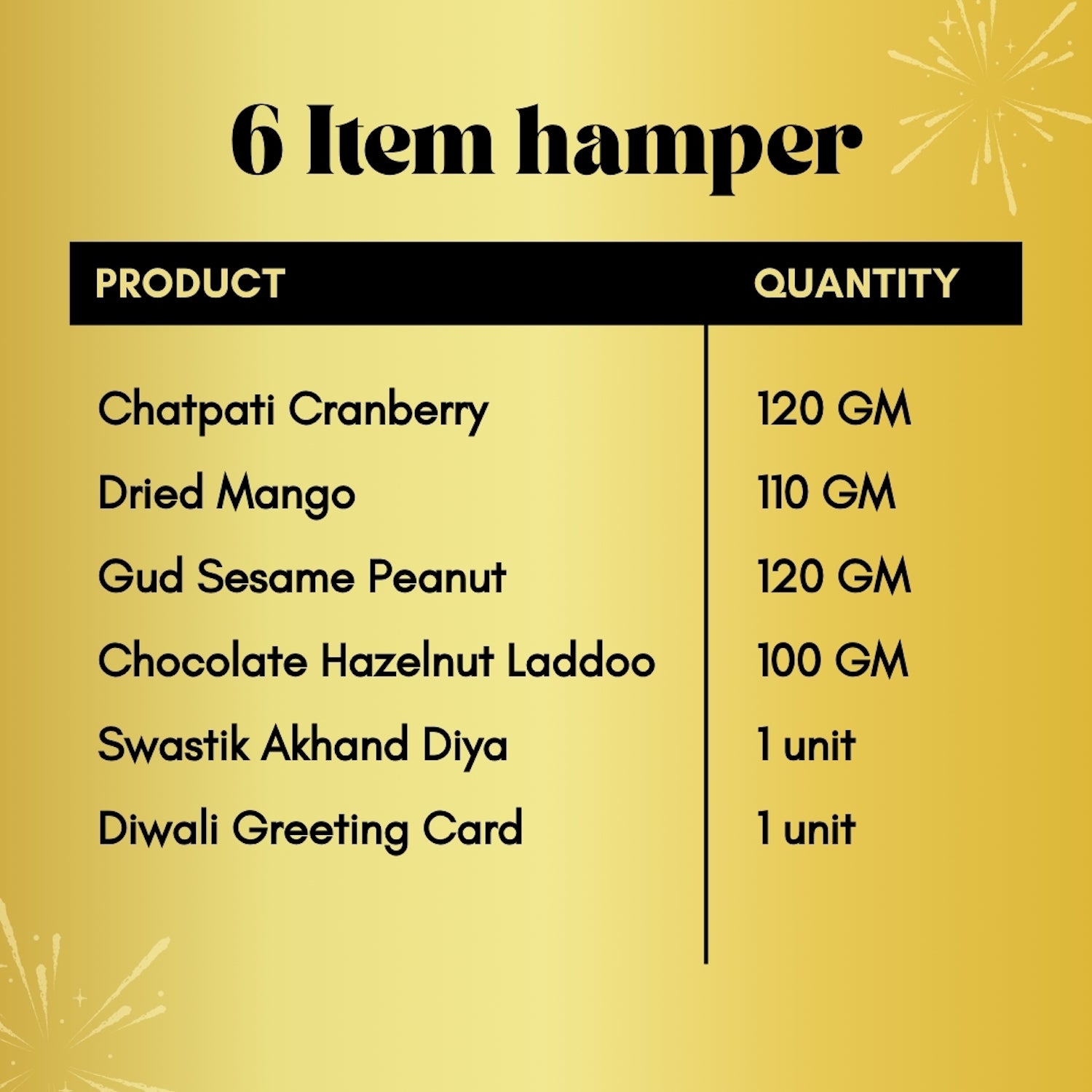 Bring home festive joy with Healthy Treat’s Diwali hamper, filled with Chatpati Cranberries, Dried Mango, Gud Sesame Peanuts, and rich Chocolate Hazelnut Laddoos. ✨ Paired with a Swastik Diya and Diwali greeting card, it’s a perfect blend of taste, tradition, and thoughtful gifting for your loved ones and business associates.