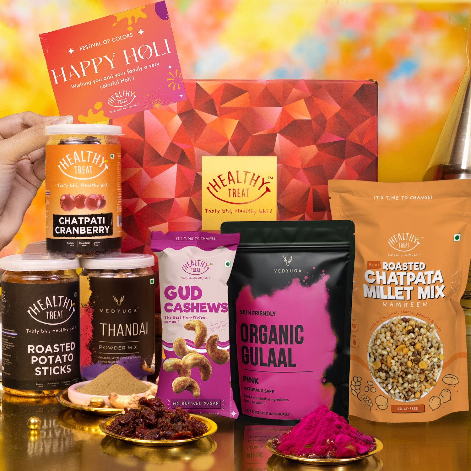 Healthy Treat Holi Glow Gift Hamper – Festive Snacks, Thandai & Herbal Gulal